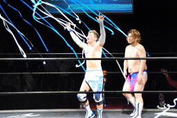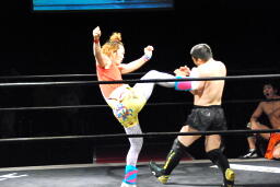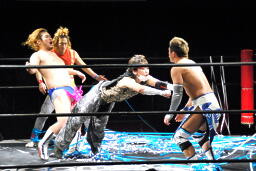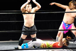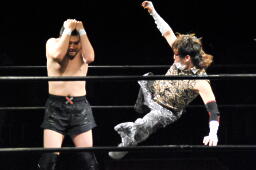 ニラジャンプして(右写真)ローキック。福田と彰人にタッチ。5分経過。