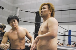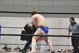 SEIKIみちのくドライバー狙う、遠藤背後に着地してジャーマン(左写真)、HANZOがカット。