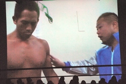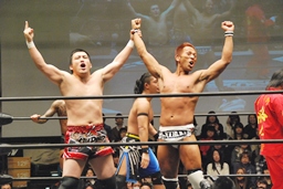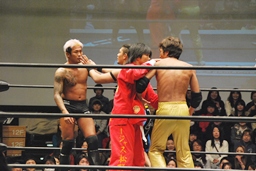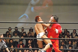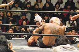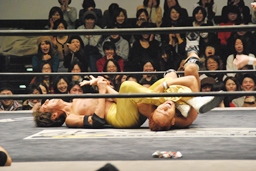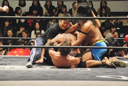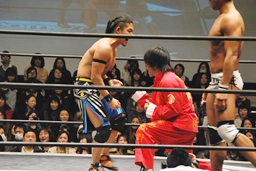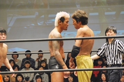 セコンドが分けるが両者収まらず(左写真)、1月6日横浜赤レンガホール大会でのシングルマッチが決定。
