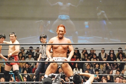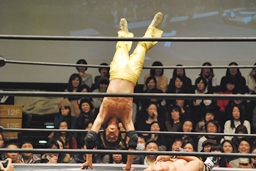 MIKAMIと彰人をブレーンバスターで投げる(右写真)。