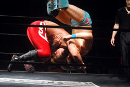 HARASHIMA立ち上がってバック取るとジャーマン(左写真)、10分経過。