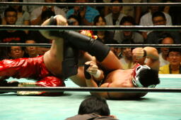 タイガースエビ固めに切り返す(左写真)、カウント2。