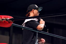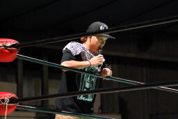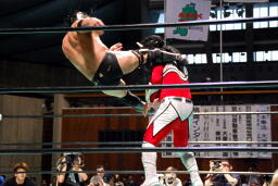 ハヤト「僕はこのベルト持って他団体の選手と闘うことでみちのく最強を示してるつもりでしたが、ワールドリーグ戦見て、この人倒してからじゃないとダメだなと思いました。こちらこそよろしくお願いします。僕は、アンタが先輩だろうとベテランだろうと関係なく、全力で潰しに行きます。」(左写真)