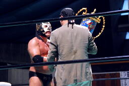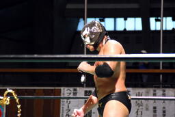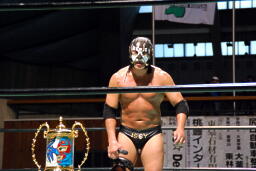 サスケ「去年暮れから『かっこいいカラダ』の表紙の撮影で肉体改造してて、もしかしたらこのサスケ、頑張ればやれるんじゃないかと思い、今回が最後の、最後のチャンスだと思ってエントリーしました。みちのくプロレス、応援本当にありがとうございます。これからも絶対みちのくプロレス、歩みを止めちゃダメなんです。みなさんが一人でもいる限り、俺は地獄の底から這い上がる。這い上がってる途中です。まだまだこれから這い上がりますよ。なぜなら、人生は這い上がるためにある。だからこそ、わたくしに資格があるんじゃないですか。ベルト挑戦の!ハヤト、いるんだろ!」とベルトに挑戦表明(左写真)。
