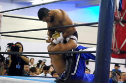 マキシモは笑顔で外道に迫る(右写真)、ロメロが阻止。