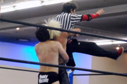 どどん(右写真)はレフェリーまだ復帰しておらずノーカウント。