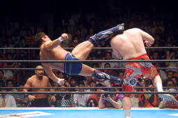 天山ヘッドバット、モンゴリアンチョップ連打(右写真)。