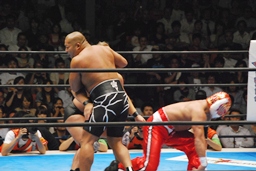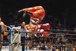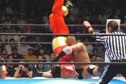 豪快な雪崩式ブレーンバスター(右写真)、カバーはライガーがカット。石井は裕二郎にタッチ。