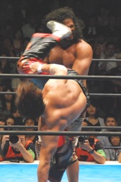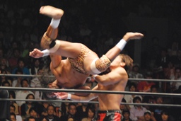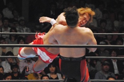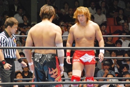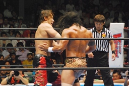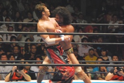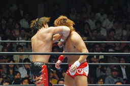 丸藤腕を取る、内藤切り返すが丸藤は身軽な動きで切り返し(右写真)、