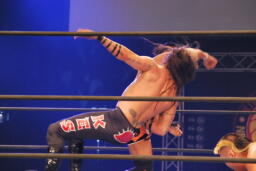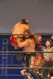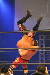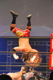 キラーボムは小島が阻止して2人にラリアット、そしてテンコジカッター(右写真)、天山がカバー、カウント2。