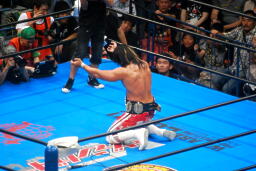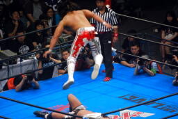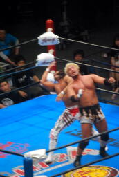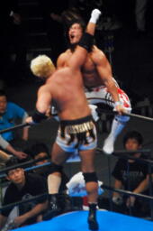 棚橋背後から飛びついて(右写真)、