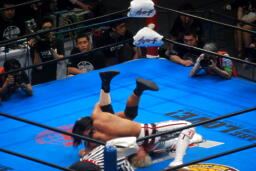 真壁ブレークしてラリアット、棚橋これもかわしてフルネルソンからドラゴンスープレックスホールド(右写真)、カウント2。