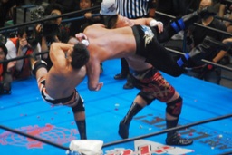 武藤がシャイニングウィザード(右写真)、