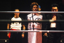 早くも始皇帝がリングに。相手を呼び込む(左写真)。