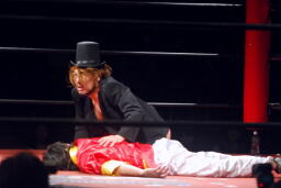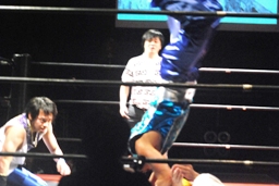 2人でニードロップ連打(右写真)、夏侯淵がカバー、カウント2。