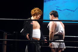 意を決してリングインする洋田福(左写真)と村田沢。えっ村田沢も闘うのか?