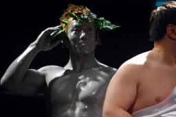 村は最終奥義・からしを手に塗ってダビデ像の顔面に(右写真)。