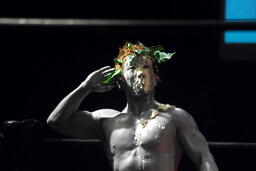 安敦かわし生卵はダビデ像に(左写真)。