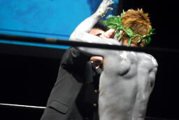 ダビデ像もんどりうって倒れる(左写真)、