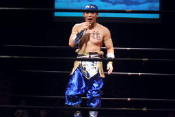 曹彰ナックル(左写真)、サミングからフィストドロップ。