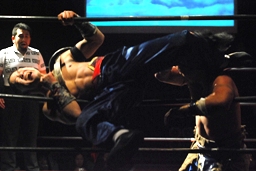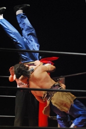 曹彰ブレーンバスター(右写真)、カウント2。
