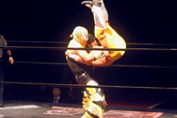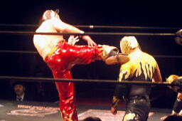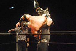 ビリーは背後に着地してリバースフランケンシュタイナー(右写真)。空牙がカット。
