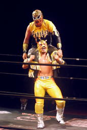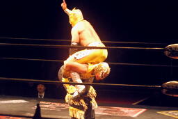 場外のJOKER勢目掛けてトペ・コン・ヒーロ(右写真)。