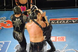 スパイダー股裂き、マスクはぎ(左写真)。
