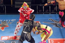 第5試合 空牙、政宗、スパイダー・J vs ミラクルマン、くいしんぼう仮面、救世忍者・乱丸