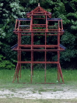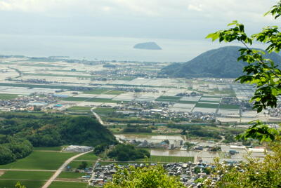 坂を上り、小谷山の頂上にある大嶽(おおづく)城跡に。標高は495mだがキツいもんはキツい。米原駅で買っておいた「近江牛大入飯」で昼食。クマうんぬん気にしてたら弁当広げるのもどうか、という感じもしたが、頂上までは来ないだろう、ということで。