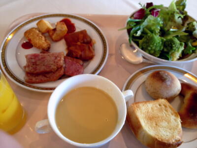 さっさと寝たはいいが、早く寝過ぎたため4時半に目が覚める。二度寝もできないので6時に朝風呂、7時に朝食。ちゃんとしたホテルのバイキングは美味い。