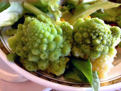 初めて食べたうずまき(ロマネスク)ブロッコリー。味は確かにブロッコリーとカリフラワーをかけ合わせた感じ。