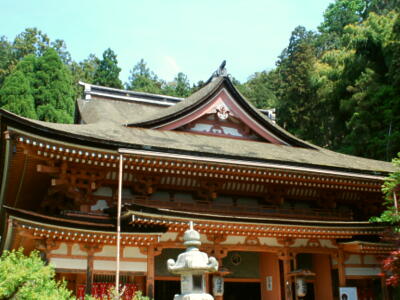 伏見城の遺構が移築されたといわれる都久夫須麻神社本堂。昔は竹生島全体が宝厳寺だったのが、明治の神仏分離令でこちらは神社となった。