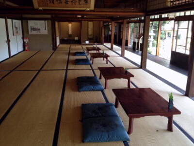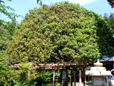 続いて向かいにある慶雲館に。巨大石灯籠。