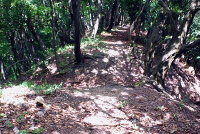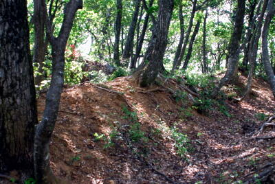 こちらの尾根には朝倉氏が守備用に作った二つの郭というか陣城があるってことで是非来てみたかった。まさに塹壕と言った作りの実戦の城が。