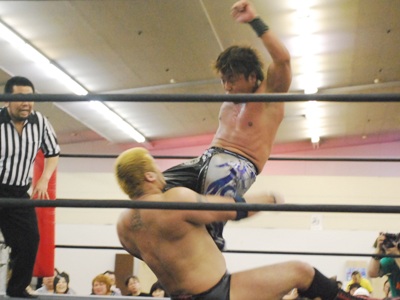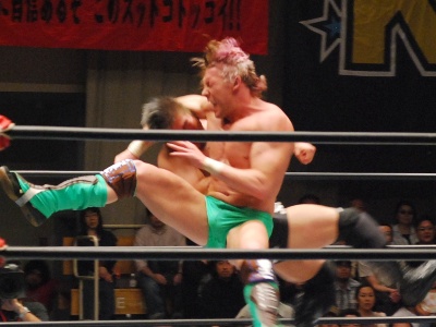 後楽園には12時半に到着。第2試合終わってKENSOが退場するとこ。第3試合から見るけど、渕の試合なので写真は撮らない。第4試合から通常観戦モードに。この試合で復帰のはずの征矢匠がこの試合をもって引退と発表。初めての兄弟コンビはそういう意味だったか。兄のラリアットによるアゴの負傷が原因というのは何とも皮肉。第5試合、ケアのタイガードライバー'91がひど過ぎて。これで「王道」とか言うな。セミは関本&岡林が防衛。次の挑戦者はまたSMOPだそうだ。うーん。そしてメイン、ケニーは世界ジュニア王座防衛失敗。予想通りではあるが、自分の目で見ることに価値がある。試合はいい試合だったしね。観戦記。15時3分試合終了。やはりメインだとこの時間になるなあ。予定変更して正解。