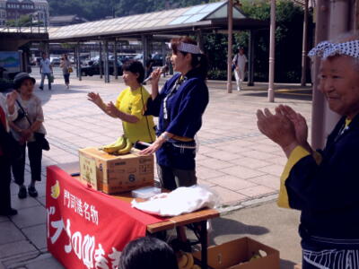 門司港駅到着。今日は天気いい。バナナの叩き売りやってたが、めちゃくちゃトチりまくり。新人かな?見る価値なし。