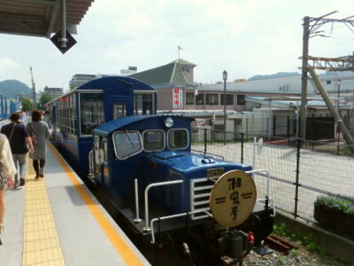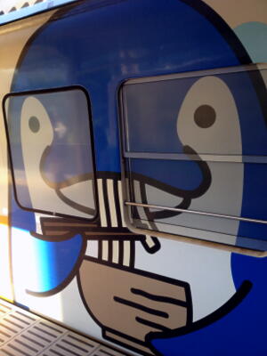 長尾線で高松築港に戻る。ことでんのキャラ。