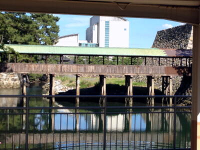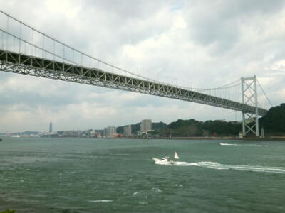 海岸を一駅ぶん歩き、山を登って門司城跡に。なんでこんな暑い日に登ってんだろうなあ・・・。何があるってわけじゃないし。途中見下ろすとちょうどDDT勢が乗った武井観光のバスが関門大橋渡るのが見えた。山笠の影響でDDT勢も昨日は福岡市内にホテルが取れず小倉泊まりだったらしい。