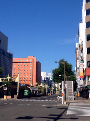 すすきの中心街。空の色がきれいだと何でもいい感じになる。