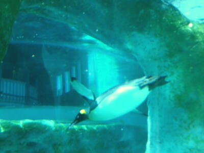ぺんぎん舎。高速で泳ぐオオサマペンギン。