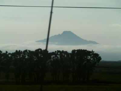 ここまでずっと晴れてたのに稚内近辺では急に雲が。利尻富士も雲に半分隠れた状態。