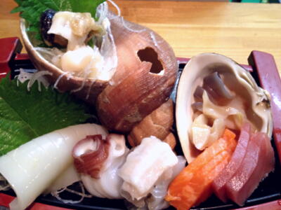 ホッキ貝中心の刺身盛り。