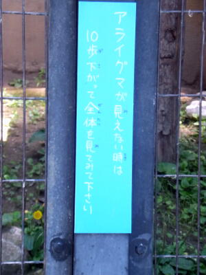 隣のアライグマスペースにはこういう張り紙が。