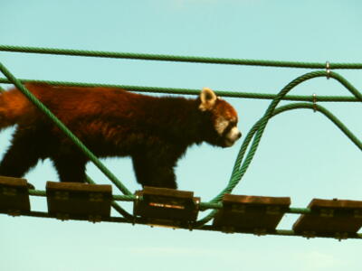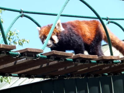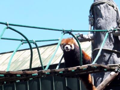 つり橋にレッサーパンダが現れた。ショーの始まり。