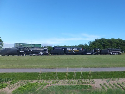 名寄の除雪車キマロキ編成(機関車+マックレー車+ロータリー車+機関車)展示。