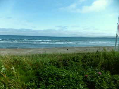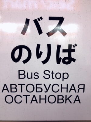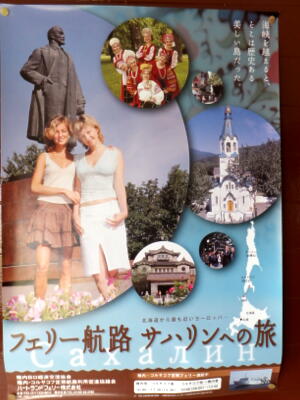 バス待合所のポスター。一度は行ってみたい気もするが>サハリン。
