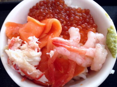 朝食はホテルのバイキング。と言ってもここは4種類の具乗せ放題の海鮮丼が作れる。これは凄い。