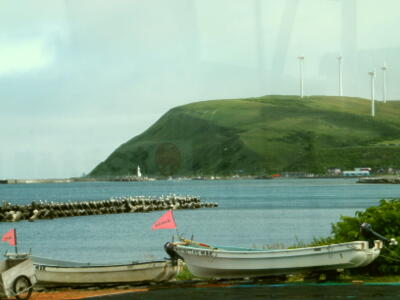 10時3分、稚内に戻るバスに乗車。利尻富士見えた。今日は大丈夫か?