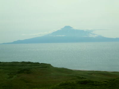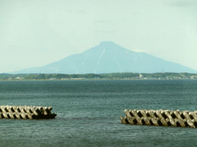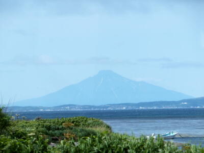 利尻富士。窓越しの写真だと薄ぼんやりになるのは仕方ない。見えただけマシ。
